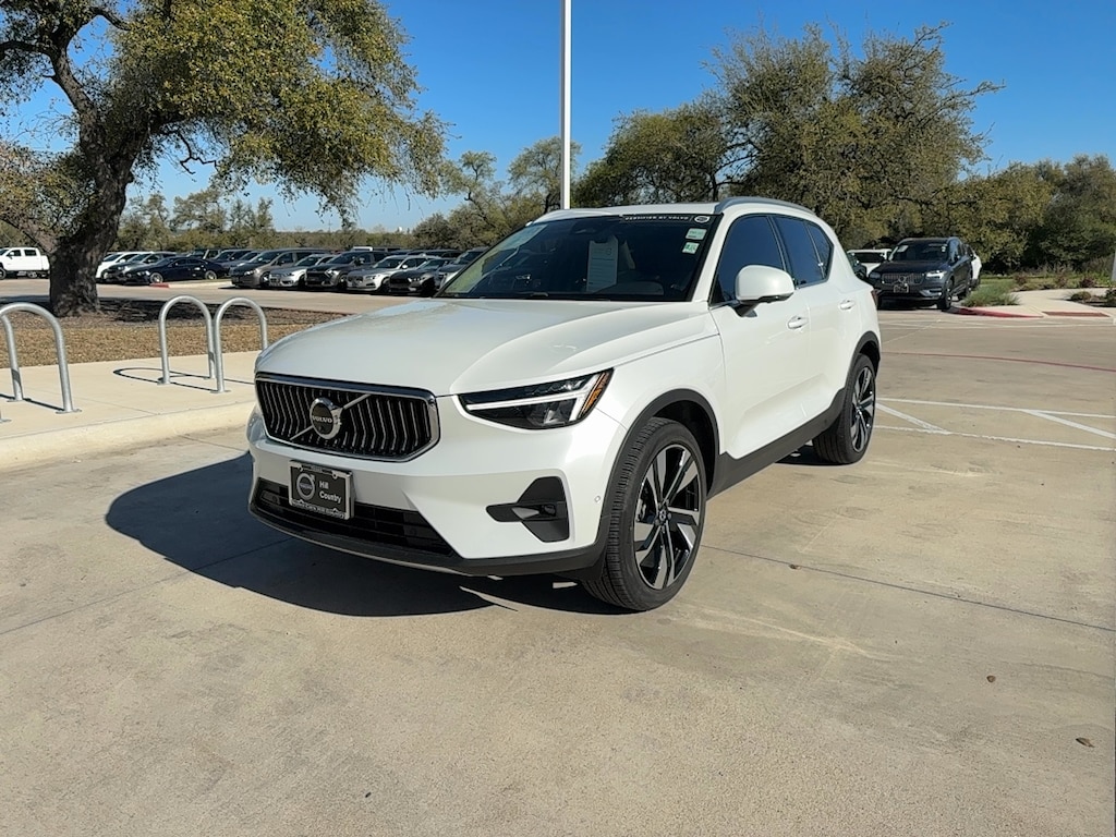 23/30 City/Highway MPG Crystal White Metallic 2023 Volvo XC40 B5 Plus Bright Theme AWD 2.0L Turbo I4 247hp 258ft. lbs. 20 Inch 5-Double-Spoke Black Diamond Cut Alloy Wheels, Climate Package, Driver Assistance Package, Power Operated Tailgate, Protection Package Premier, Roof Spoiler 12 Driver Seat Power Adjustments, 12 Passenger Seat Power Adjustments, 12.3 In. Instrument Cluster Screen Size, 12V Cargo Area Power Outlet(s), 12V Front Power Outlet(s), 2 Driver Memorized Settings, 2 Front Headrests, 2.0L Turbo I4 247hp 258ft. lbs., 20 INCH 5-DOUBLE-SPOKE BLACK DIAMOND CUT ALLOY WHEELS, 250 Watts, 3 Rear Headrests, 3-point Front Seatbelts, 3-point Rear Seatbelts, 4 One-touch Windows, 4-way Power Lumbar Driver Seat Power Adjustments, 4-way Power Lumbar Passenger Seat Power Adjustments, 4-wheel ABS, 6 Wheel Spokes, 60-40 Split Bench Rear Seat Type, 8 Total Speakers, 8-Speed Shiftable Automatic, 800 CCA Battery Rating, 9 In. Infotainment Screen Size, Accessory Hook Storage, Acoustic Windshield Laminated Glass, Active Charcoal Air Filtration, AGM Battery, Alarm Anti-theft System, Alloy Steering Wheel Trim, Aluminum Dash Trim, Aluminum Door Sill Trim, Aluminum Door Trim, Aluminum Interior Accents, Aluminum Roof Rails, Ambient Lighting, Android Auto Smartphone Integration, Android Automotive Infotainment, Anti-tow Sensor Anti-theft System, Anti-trapping Moonroof / Sunroof, App Marketplace Integration Connected In-car Apps, Apple CarPlay Smartphone Integration, Approach Lamps Exterior Entry Lights, Audible Warning Pre-collision Warning System, Audio Steering Wheel Mounted Controls, Auto Delay Off Headlights, Auto High Beam Dimmer Headlights, Auto Off Electronic Parking Brake, Auto On/off Headlights, Auto Start/stop, Auto-dimming Rearview Mirror, Auto-dimming Side Mirrors, Auto-locking Power Door Locks, Auto-off Rear Fog Lights, Automatic Climate Control Front Air Conditioning, Automatic Hazard Warning Lights, AWD, Battery Saver, Bin Storage, Black Fender Lip Moldings, Black Rear Bumper Color, Black Rocker Panel Color, Bluetooth Auxiliary Audio Input, Bluetooth Wireless Data Link, Body-color Door Handle Color, Body-color Front Bumper Color, Body-color Mirror Color, Body-color Rear Spoiler Color, Braking Assist, Bucket Front Seat Type, Capless Fuel Filler System, Cargo Area Light, Carpet Floor Mat Material, Carpet Floor Material, Center Locking Differential, Child Safety Door Locks, Chrome Grille Color, Chrome Window Trim, CLIMATE PACKAGE, Clock, Coil Front Spring Type, Coil Rear Spring Type, Compass, Coolant Temperature Warning Warnings And Reminders, Cornering Brake Control, Cornering Front Fog Lights, Cruise Control, Cruise Control Steering Wheel Mounted Controls, Crystal Glass Shift Knob Trim, Customizable Instrument Cluster, Digital Odometer, Diversity Antenna Type, Door Courtesy Lights, Door Pockets Storage, Door Unlock Impact Sensor, Drive Mode Selector, DRIVER ASSISTANCE PACKAGE, Driver Attention Alert System, Driver Knee Airbags, Driver Seat Memorized Settings, Dual Front Air Conditioning Zones, Dual Front Airbags, Dual Front Impact Absorbing Seats, Dual Illuminating Vanity Mirrors, Electronic Brakeforce Distribution, Emergency Braking Preparation, Engine Start Smart Device App Function, External Temperature Display, Fixed Liftgate Window, Flat Rear Seat Folding, FM Radio, Foldable Rear Headrests, Footwell Lights, Front Assist Handle, Front Automatic Emergency Braking, Front Console With Armrest And Storage Center Console, Front Crumple Zones, Front Cupholders, Front Emergency Locking Retractors, Front Floor Mats, Front Overhead Console, Front Parking Sensors, Front Pedestrian Automatic Emergency Braking, Front Reading Lights, Front Seatback Storage, Front Seatbelt Force Limiters, Front Seatbelt Pretensioners, Front Seatbelt Warning Sensor, Front Side Airbags, Front Side Curtain Airbags, Front Skid Plate(s), Front Stabilizer Bar, Gas Front Shock Type, Gas Rear Shock Type, Glass Breakage Sensor Anti-theft System, Google Assistant Connected In-car Apps, Google Assistant Smart Device App Compatibility, Google Built-In Infotainment, Google POIs Connected In-car Apps, Google Search Connected In-car Apps, Grocery Bag Holder Storage, Hard Drive, Head-on Collision Avoidance Evasive Steering Assist, Heated Driver Seat, Heated Passenger Seat, Heated Side Mirrors, Height Driver Seat Power Adjustments, Height Passenger Seat Power Adjustments, Hidden Exhaust, Hill Descent Off-road Driving Assist, Hill Holder Control, Homelink - Garage Door Opener Universal Remote Transmitter, Hotspot Compatible Wi-Fi, Humidity/dewpoint Sensors, IHeartRadio Internet Radio App, Illuminated Cupholders, In Dash Rearview Monitor, In Floor Storage, In Seat Cushion Storage, Independent Front Suspension Classification, Independent Rear Suspension Classification, Inside Spare Tire Mount Location, Integrated Front Headrests, Integrated Turn Signals Side Mirrors, Interior Motion Sensor Anti-theft System, IPod/iPhone Auxiliary Audio Input, Lamp Failure Warnings And Reminders, Lane Deviation Sensors, Lane Keeping Assist, Lane Keeping Assist With Blind Spot Integration, LATCH System Child Seat Anchors, Leather Upholstery, Leatherette Center Console Trim, Leatherette Dash Trim, Leatherette Door Trim, LED Daytime Running Lights, LED Front Fog Lights, LED Headlights, LED Taillights, Liftgate Memorized Settings, Liftgate Rear Trunk/liftgate, Lock Operation Smart Device App Function, Lockout Button Power Windows, Low Fuel Level Warnings And Reminders, Low Oil Pressure Warnings And Reminders, Low Washer Fluid Warnings And Reminders, Lower Control Arms Front Suspension Type, MacPherson Front Struts, Maintenance Due Warnings And Reminders, Maintenance Status Smart Device App Function, Maintenance-free Battery, Mast Antenna Type, Memory Card Navigation System, Microfiber Steering Wheel Trim, Mild Hybrid System, Moonroof / Sunroof Wind Deflector, MPG Fuel Economy Display, Multi-function Display, Multi-function Steering Wheel Mounted Controls, 