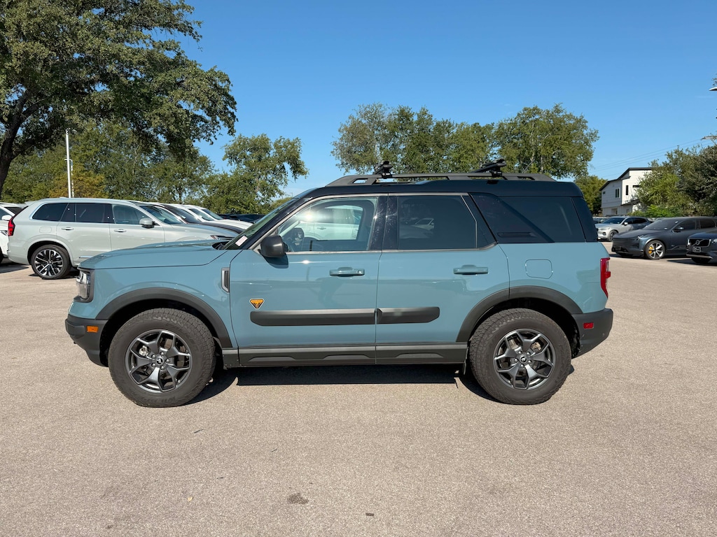 Adventure awaits in this eye-catching Lt. Blue 2021 Ford Bronco Sport Badlands AWD SUV! Built for the trail and the city, the Badlands trim features the powerful EcoBoost 2.0L Turbo engine paired with an 8-speed shiftable automatic and advanced AWD with selectable drive modes. Designed to tackle off-road challenges, it comes with off-road tuned suspension, Falken Wildpeak tires, front tow hooks, hill descent assist, and skid plates. Inside, enjoy comfort and tech with heated front seats, premium cloth upholstery, an 8-inch SYNC infotainment touchscreen with Apple CarPlay and Android Auto, FordPass Connect with Wi-Fi hotspot, and a 6.5-inch digital instrument cluster. Safety is top-notch with Ford Co-Pilot360 Assist+, including lane keeping assist, automatic emergency braking with pedestrian detection, blind spot monitoring, rear cross traffic alert, and a rearview camera. The Cargo Management System and Class II Trailer Tow Package add extra utility. Don't miss your chance to own this versatile, trail-ready SUV that brings style and capability wherever you go. Schedule your test drive today!