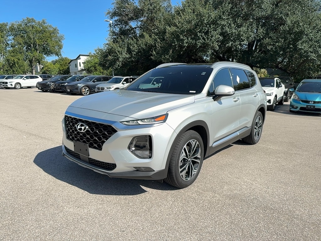 Experience comfort, technology, and turbocharged performance with this Silver 2019 Hyundai SANTA FE Ultimate 2.0T Crossover. Powered by a robust 2.0L Turbo I4 engine and an 8-speed shiftable automatic transmission, this SANTA FE delivers a dynamic drive with front-wheel drive efficiency. Stay secure with advanced safety features like Front Automatic Emergency Braking, Lane Keeping Assist, Rear Cross Traffic Alert, and a Surround View Camera System. Enjoy luxury touches including leather-trimmed upholstery, a panoramic sunroof, heated and ventilated front seats, heated rear seats, and a premium Infinity sound system. Stay connected with Android Auto, Apple CarPlay, Blue Link infotainment, and an 8-inch touchscreen with navigation. Convenience features include a hands-free power liftgate, adaptive cruise control, wireless charging, and driver seat memory. Don't miss out on this well-equipped SANTA FE Ultimate-schedule your test drive today!