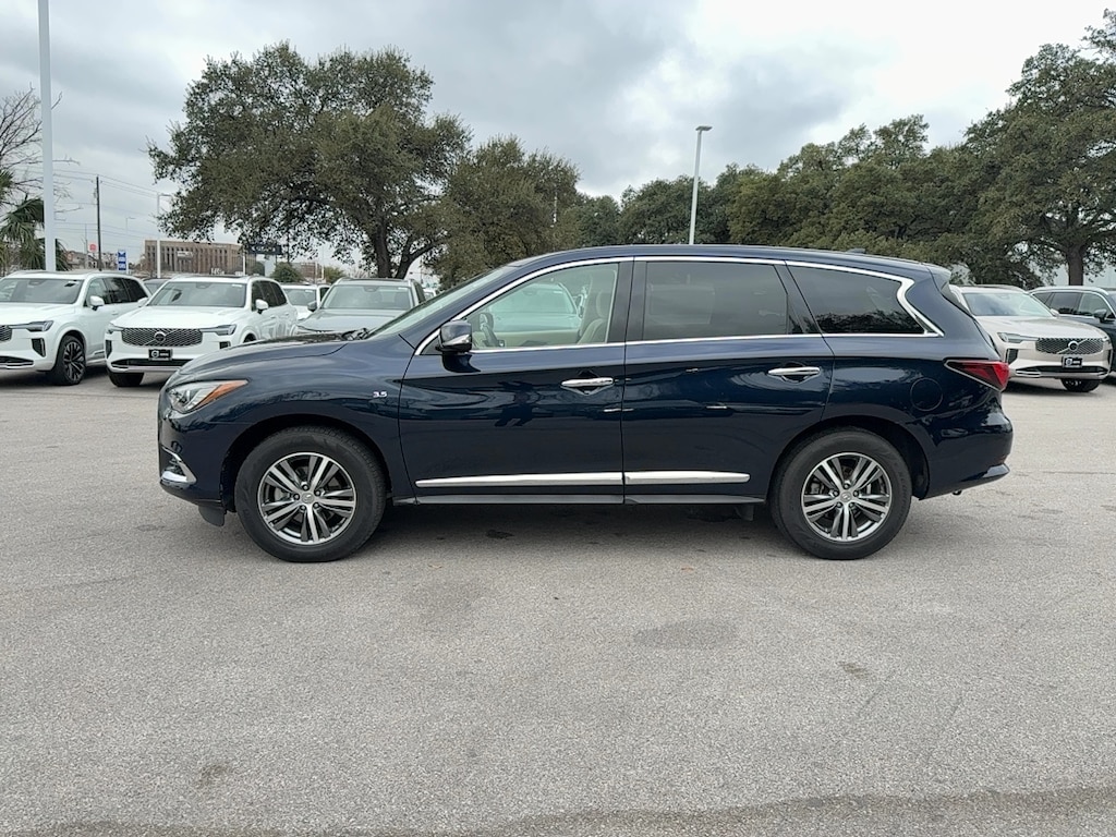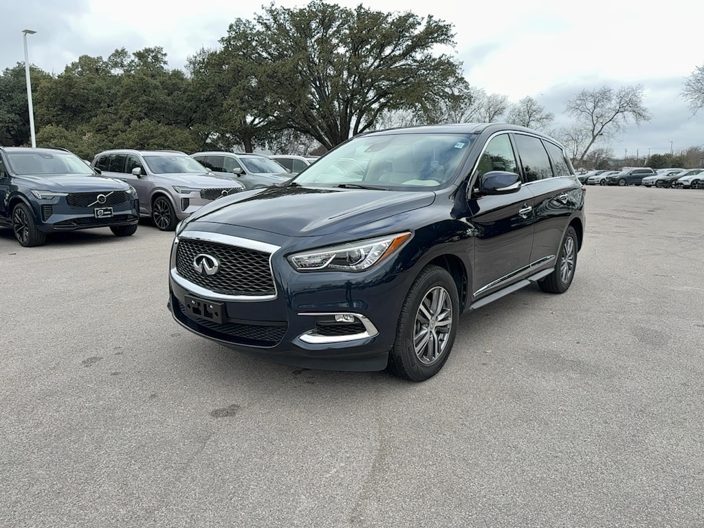 Experience luxury and versatility in this Dark Blue 2020 INFINITI QX60 AWD Pure. With all-wheel drive and a powerful 3.5L V6 engine, this SUV is perfect for families or anyone needing space and performance. Enjoy advanced safety features like Front Automatic Emergency Braking, Front Pedestrian Automatic Emergency Braking, and a full suite of airbags. Stay comfortable with heated leatherette seats, power-adjustable front seats, and tri-zone automatic climate control. The QX60 comes with a 7-inch InTouch infotainment system, Bluetooth connectivity, SiriusXM Travel Link, and voice-operated controls. Additional highlights include a power moonroof, aluminum alloy wheels, a rearview camera, push-button start, and a power liftgate for easy cargo access. Flexible seating for seven, sliding and reclining rear seats, and flat-folding third row ensure you have the space you need for every adventure. Discover premium style with chrome accents, LED headlights, and privacy glass. Test drive this well-equipped INFINITI QX60 today and elevate your driving experience.