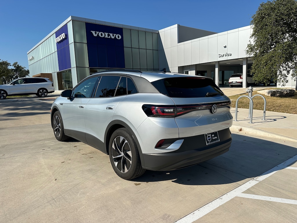 Recent addition! 116/98 City/Highway MPG CARFAX One-Owner Scale Silver Metallic 2022 Volkswagen ID.4 Pro RWD Electric 201hp 229ft. lbs. 1-Speed Direct-Drive Automatic, 10 In. Infotainment Screen Size, 120 Volt Electric Charge Cord, 12V Cargo Area Power Outlet(s), 2 Front Headrests, 280 Electric Motor Miles Per Charge, 3 Rear Headrests, 3-point Front Seatbelts, 3-point Rear Seatbelts, 4 Driver Seat Manual Adjustments, 4 One-touch Windows, 4 Passenger Seat Manual Adjustments, 4-wheel ABS, 5 Wheel Spokes, 60-40 Split Bench Rear Seat Type, 7 Total Speakers, 7.5 Hours Electric Motor Charging Time (240V), 82 KWh EV Battery Capacity, Accessory Hook Storage, Adaptive Cruise Control, Adjustable Front Headrests, Adjustable Rear Headrests, Air Filtration, Alarm Anti-theft System, Alert System Impact Sensor, AM/FM Radio, Amazon Alexa Smart Device App Compatibility, Android Auto Smartphone Integration, Anti-lockout Power Door Locks, App Marketplace Integration Connected In-car Apps, Apple CarPlay Smartphone Integration, Approach Lamps Exterior Entry Lights, Audible Warning Pre-collision Warning System, Audio Steering Wheel Mounted Controls, Auto Delay Off Headlights, Auto High Beam Dimmer Headlights, Auto Off Electronic Parking Brake, Auto On/off Headlights, Auto-dimming Rearview Mirror, Auto-locking Power Door Locks, Automatic Climate Control Front Air Conditioning, Automatic Hazard Warning Lights, Black Fender Lip Moldings, Black Grille Color, Black Rocker Panel Color, Black Roof Rails, Black Window Trim, Bluetooth Auxiliary Audio Input, Bluetooth Wireless Data Link, Body-color Door Handle Color, Body-color Front Bumper Color, Body-color Mirror Color, Body-color Rear Bumper Color, Body-color Rear Spoiler Color, Braking Assist, Bucket Front Seat Type, Car-Net Smart Device App Compatibility, Cargo Area Carpet Floor Material, Cargo Area Light, Cargo Tie-down Anchors And Hooks Storage, Carpet Floor Mat Material, Carpet Floor Material, Child Safety Door Locks, Clock, Cloth Upholstery, Coil Front Spring Type, Coil Rear Spring Type, Color-adjustable Ambient Lighting, Compass, Cruise Control Steering Wheel Mounted Controls, Customizable Instrument Cluster, DC Fast Charging Electric Motor Charger, Digital Odometer, Diversity Antenna Type, Door Unlock Impact Sensor, Drum Rear Brake Type, Dual Front Air Conditioning Zones, Dual Front Airbags, Dual Front Armrests, Dual Illuminating Vanity Mirrors, Electric 201hp 229ft. lbs., Electronic Brakeforce Distribution, External Temperature Display, Fixed Liftgate Window, Flat Rear Seat Folding, Front And Rear Wheel Locks, Front Assist Handle, Front Automatic Emergency Braking, Front Console With Armrest And Storage Center Console, Front Crumple Zones, Front Cupholders, Front Emergency Locking Retractors, Front Floor Mats, Front Overhead Console, Front Parking Sensors, Front Pedestrian Automatic Emergency Braking, Front Reading Lights, Front Seatbelt Force Limiters, Front Seatbelt Pretensioners, Front Seatbelt Warning Sensor, Front Side Airbags, Front Side Curtain Airbags, Front Stabilizer Bar, Front Wireless Charging Station, Gas Front Shock Type, Gas Rear Shock Type, Google POIs Connected In-car Apps, Google Search Connected In-car Apps, HD Radio Radio, Heated Driver Seat, Heated Passenger Seat, Heated Side Mirrors, Heated Steering Wheel, Heated Windshield Washer Jets, Height Driver Seat Manual Adjustments, Height Passenger Seat Manual Adjustments, Hill Holder Control, Horn/light Operation Smart Device App Function, Hotspot Wi-Fi, In Dash Rearview Monitor, In Floor Storage, Independent Front Suspension Classification, Independent Rear Suspension Classification, Inflator Kit Spare Tire Kit, Integrated Turn Signals Side Mirrors, Intermittent Rear Wiper, IPod/iPhone Auxiliary Audio Input, Lane Deviation Sensors, Lane Keeping Assist, Lane Keeping Assist With Blind Spot Integration, LATCH System Child Seat Anchors, Leather Steering Wheel Trim, Leatherette Dash Trim, Leatherette Door Trim, LED Daytime Running Lights, LED Headlights, LED Taillights, Liftgate Rear Trunk/liftgate, Lithium Ion Electric Motor Battery Type, Lock Operation Smart Device App Function, Lockout Button Power Windows, Low Battery Warnings And Reminders, Lower Control Arms Front Suspension Type, MacPherson Front Struts, Maintenance Due Warnings And Reminders, Maintenance Scheduling Smart Device App Function, Maintenance Status Smart Device App Function, Manual Folding Side Mirror Adjustments, Mast Antenna Type, Multi-function Display, Multi-function Steering Wheel Mounted Controls, Multi-link Rear Suspension Type, Occupant Sensing Passenger Airbag Deactivation, Panic Alarm Multi-function Remote, Pedestrian Detection Pre-collision Warning System, Pedestrian Safety Sound Generation, Phone Steering Wheel Mounted Controls, Post-collision Safety System Impact Sensor, Power Brakes, Power Side Mirror Adjustments, Proximity Entry System Multi-function Remote, Push-button Start, Radio Data System, Rain Sensing Front Wipers, Range Fuel Economy Display, Real Time Traffic Navigation Data, Rear Assist Handle, Rear Cross Traffic Alert, Rear Crumple Zones, Rear Cupholders, Rear Emergency Locking Retractors, Rear Floor Mats, Rear Parking Sensors, Rear Privacy Glass, Rear Reading Lights, Rear Seatbelt Pretensioners, Rear Side Curtain Airbags, Rear Stabilizer Bar, Rear Window Defogger, Rearview Camera System, Reclining Driver Seat Power Adjustments, Reclining Passenger Seat Power Adjustments, Regenerative Braking System, Roadside Assistance Driver Assistance App, Roofline Rear Spoiler, RWD, SAE Combo CCS Electric Motor Charger Connector, Safety Reverse Power Windows, Second Row Rear Vents, Semi-automatic Adaptive Stop And Go Cruise Control, Sensor/alert Blind Spot Safety, SiriusXM Satellite Radio, Speed Sensitive Front Wipers, Speed Sensitive Volume Control, Split Rear Seat Folding, Stability Control, Tilt And Telescopic Steering Wheel, Tire Pressure Monitoring System, Tire Sealant Spare Tire Kit, Touch Screen Display Nav